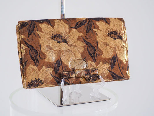 1960s Lennox Gold & Brown Floral Brocade Evening Clutch