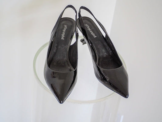Jeffrey Campbell Black Patent Leather Persona Slingback Kitten Heels - Size 10 - Unworn