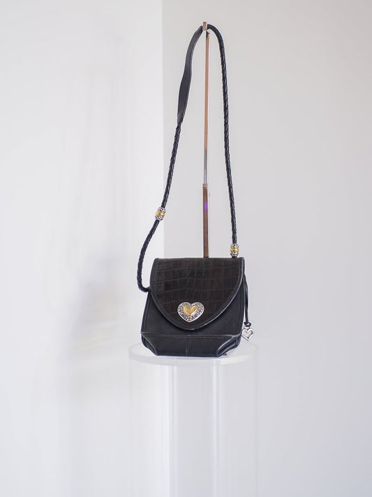 Vintage 90s Brighton Leather Purse - Classic Black with Heart Clasp