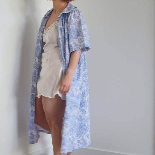 Vintage 1970s Crowntuft Periwinkle Blue Floral Sleep Robe