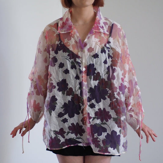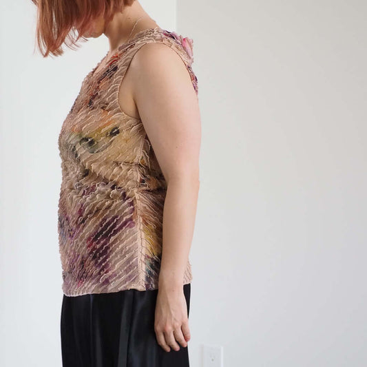 Vintage Coldwater Creek Watercolor Ruffle Sleeveless Top