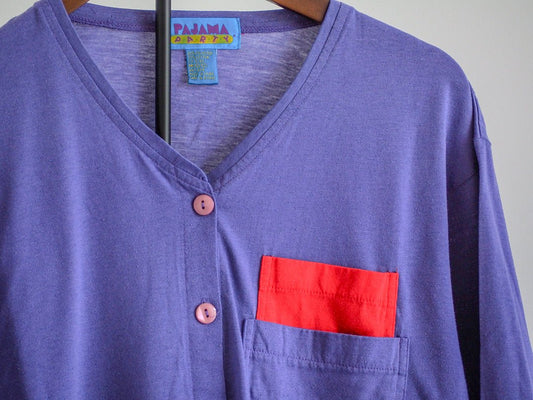 80s Pajama Party Purple Buttondown Sleep Shirt - M (10-12)
