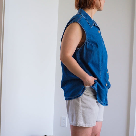 Vintage 1990s Bill Blass Women Jeans Sleeveless Buttondown