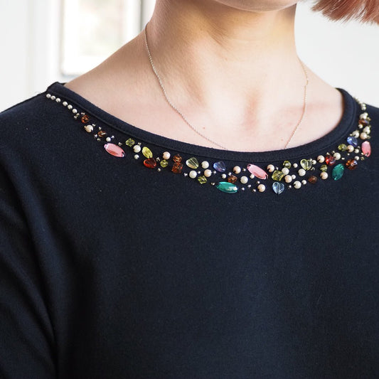 Vintage 1999 Classic Elements Black Bejeweled Neckline T-Shirt