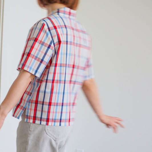 90s Star-Spangled Red Plaid Sleeveless Button Up Shirt
